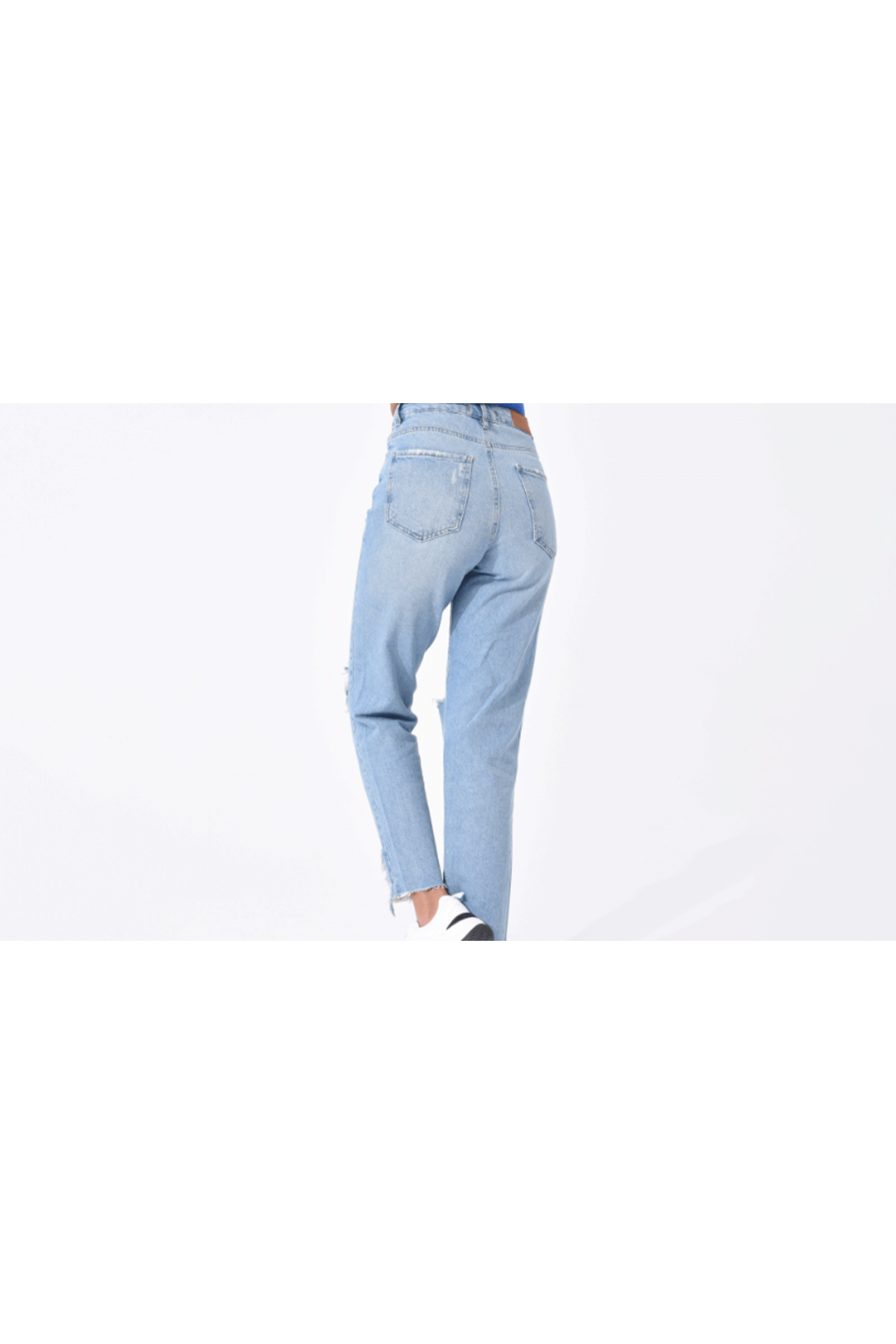 Kesik Detaylı Mavi Jean Pantolon Ke...
